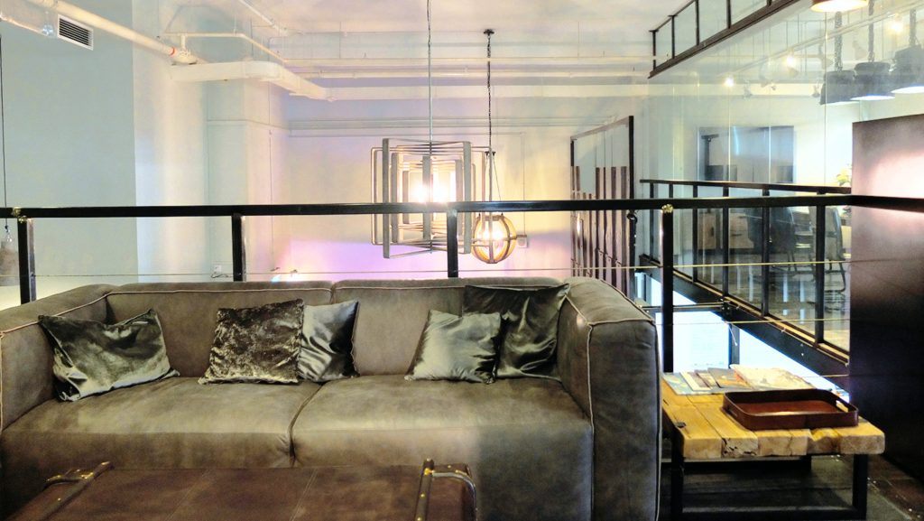 Touches of greenery and natural light soften the overall tone, creating an atmosphere that inspires focus, conversation, and creativity. Every detail, from the sculptural light fixtures to the brass riveted furnishings, speaks of strength and sophistication; a workspace that celebrates both form and function in perfect harmony.