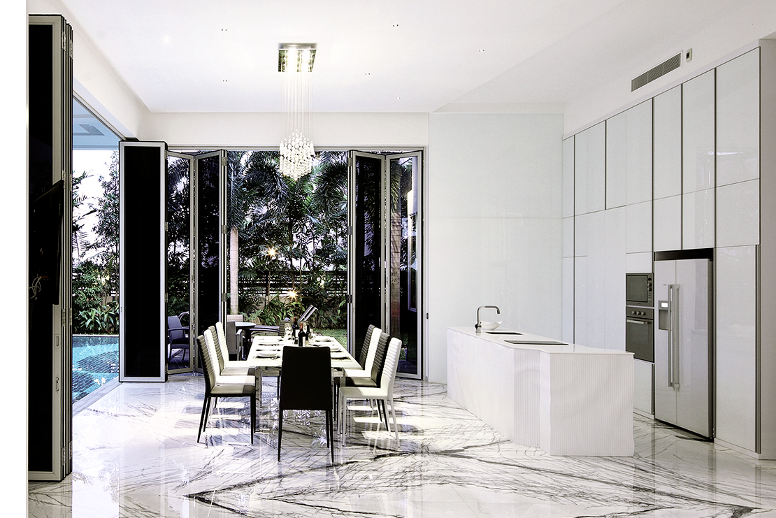 At Tai Yuan Heights, this six bedroom, six bathroom bungalow was transformed into a serene retreat inspired by the calmness and purity of falling snow. Over six months, the design sought to create a cool escape from Singapore’s tropical climate — a tranquil sanctuary where light, form, and texture come together in harmony.