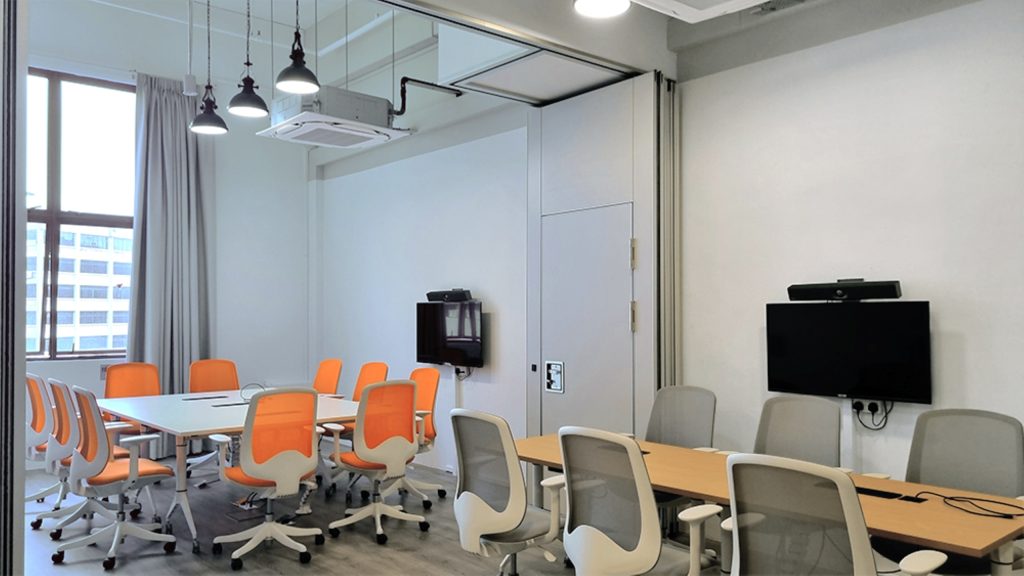 The highlight is the main meeting room, a 10 meter long space anchored by an orange storage cabinet. With movable tables and hidden power outlets, it adapts easily from formal meetings to collaborative workshops, reflecting the client’s desire for a workspace that evolves with their needs.