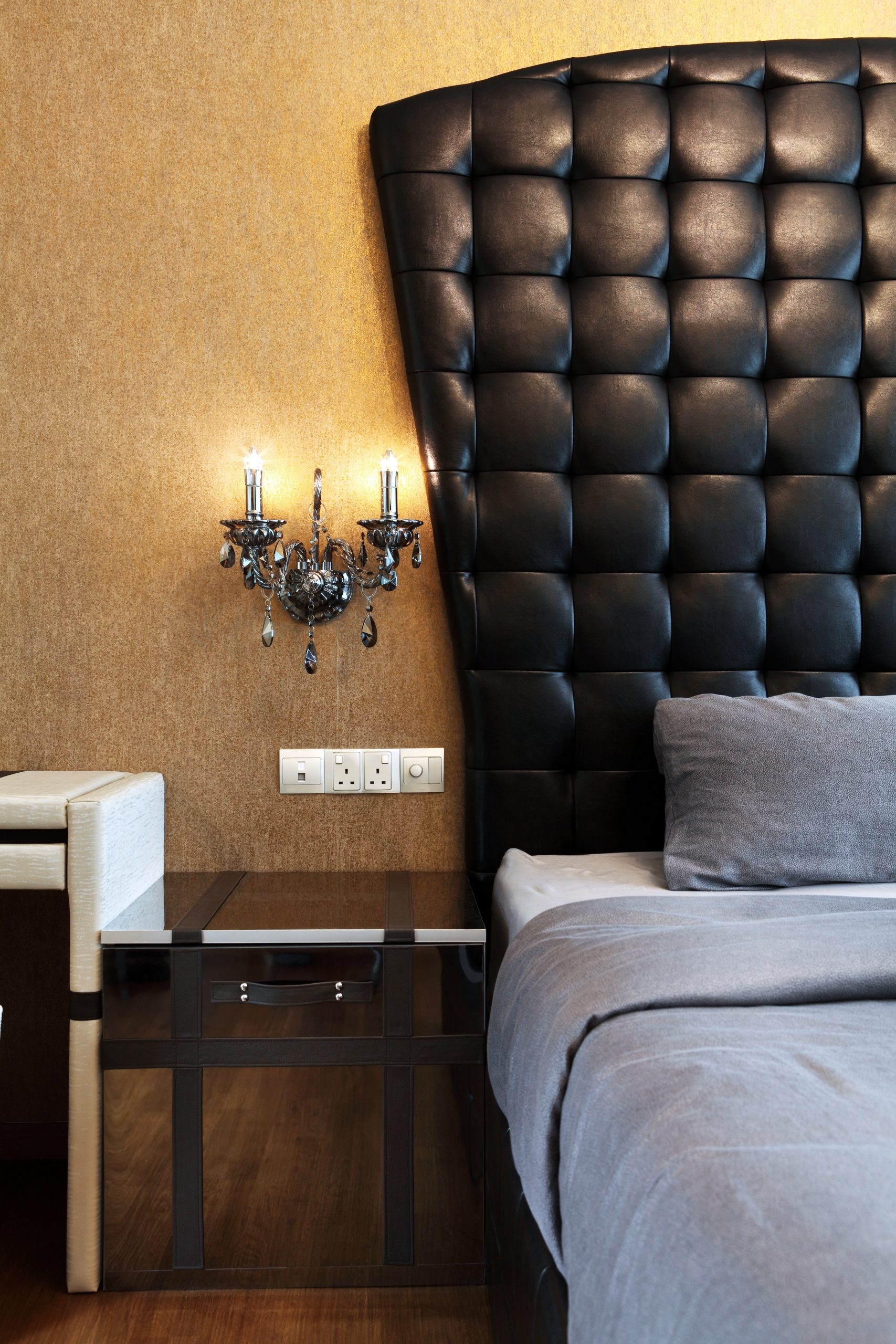 In the bedrooms, soft golden tones, crystal wall lights, and thoughtful storage solutions, like a flip up mirror and a bay window cushion seat, bring together functionality and flair — perfect for quiet routines or relaxed lounging.
